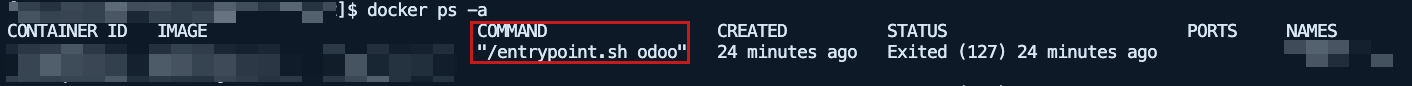 # user@computer odoo_test % ls -la # total 8 # drwxr-xr-x@ 3 user staff 96 Mar 6 09:42 . # drwx------@ 20 user staff 640 Mar 7 01:42 .. # -rw-r--r--@ 1 user staff 1546 Mar 6 09:42 Dockerfile