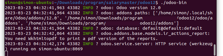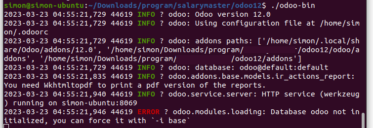 Then turn on your browser and go to this url -> localhost:8069, and you may find some error now.