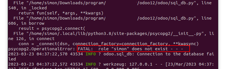 1 | FATAL: Peer authentication failed for user "odoo" |