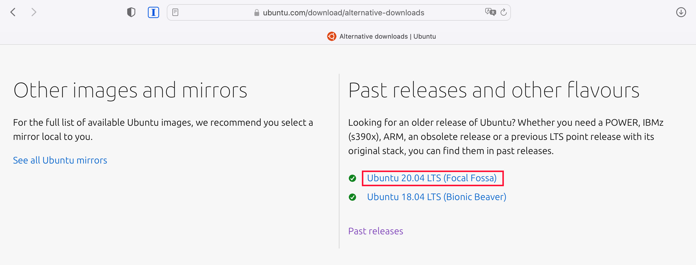 Click this page to download the Ubuntu you want. As I want to download 20.04 LTS, I need to go to alternative page to search.