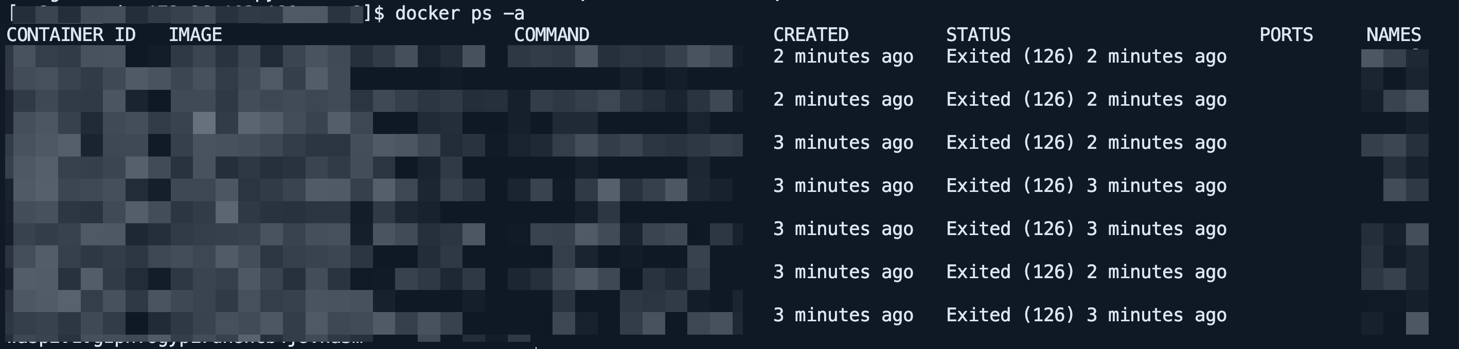 As we can see from the following picture, the containers started and exited many times in about 3min. It means there are some error when waking up the image