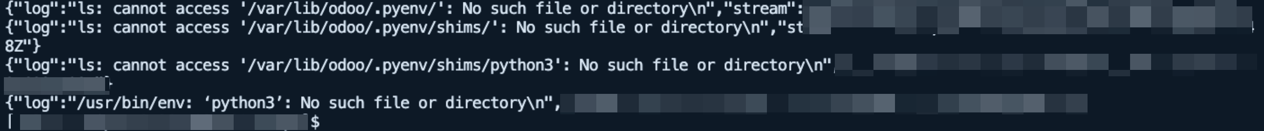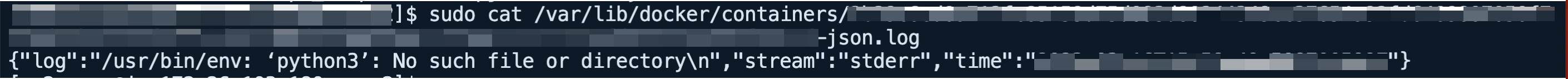 According to the log, there seems to be no python in this image, which is completely different from my local environment.