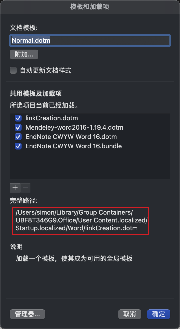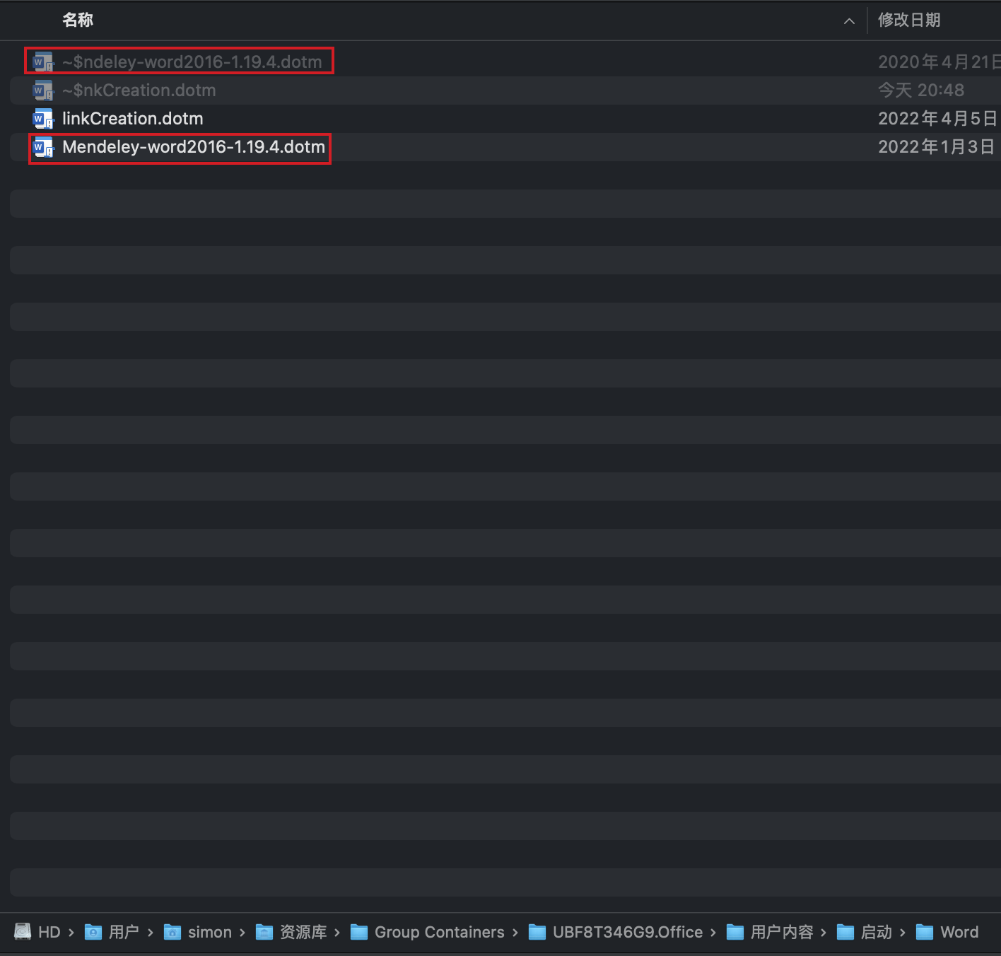 在完全退出Word后,删除目标路径下Mendeley的dotm文件。此时重新打开Word,问题已解决。